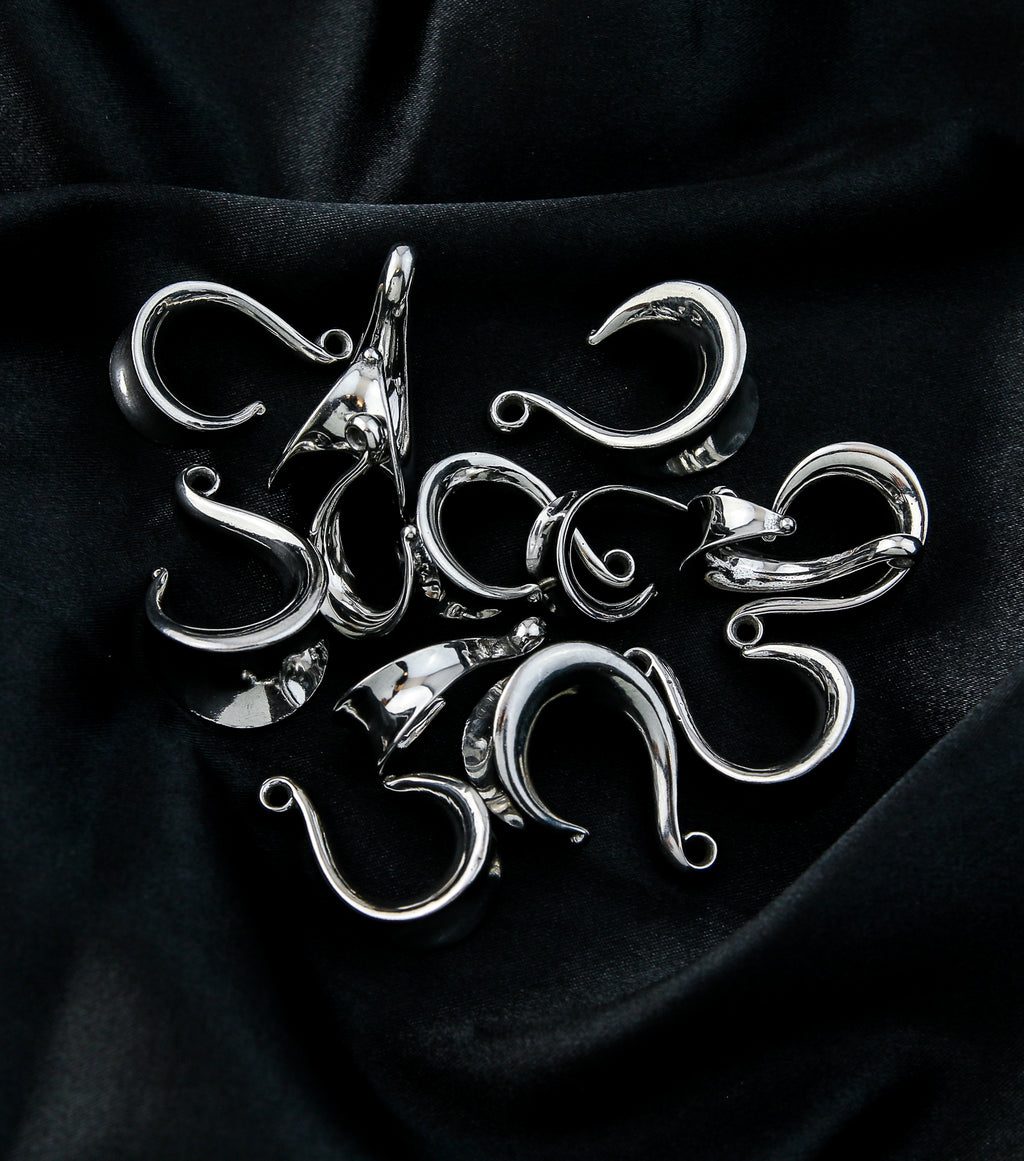 Worn like normal ear weights, these handmade Saddle Hanger Ear Weights are made with 316L stainless steel and are designed to provide a customizable look. Choose from three different sizes for a perfect fit, and enjoy the lightweight feel of 2 grams, 4.5 grams, or 9 grams per piece. These hangers can be worn with plug hoops or earrings 16G or smaller, making them a versatile addition to your jewelry collection. Recommended for healed lobes only.