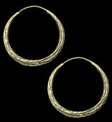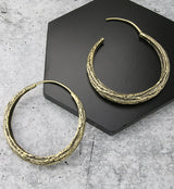 Lightweight yellow brass ear weights/hangers with a hoop design and a twig or branch like design. Height: 66mm Width: 66mm. NOTE: these are handmade so diameter and weight will be approximate. Size is 14g (1.6mm). Weight: 24 grams each. Made from brass. Complete with a hinged design which makes these earrings easy to open and close. Not meant for long term wear. May oxidize under extreme moisture conditions. Sold in pairs (2pc). For healed piercings/lobes.