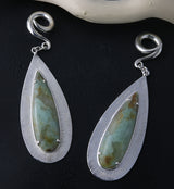 Natural chrysoprase stone white brass ear weights that are 100% unique in color, pattern and size. They are made from white brass and sold in pairs. Wearable at 4G or bigger. Sold in pairs (2pcs). Free domestic shipping.