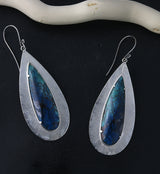 One of a kind, natural fossil opal stone white brass earrings that are 100% unique in color, pattern and size. Handcrafted and polished. They are made from white brass with an ASTM F-136 titanium wire. Wire is 18G. Sold in pairs (2pcs). For healed lobes/piercings.