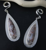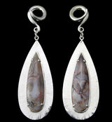 Beautiful laguna lace agate stone white brass ear weights that are one of a kind in color, pattern and size. They are made from white brass and sold in pairs. Wearable at 4G or bigger. Sold in pairs (2pcs). Free domestic shipping.