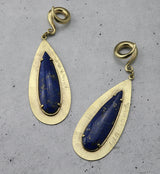 Pretty lapis lazuli stone brass ear weights that are 100% unique in color, pattern and size. They are made from brass and sold in pairs. Wearable at 4G or bigger. Sold in pairs (2pcs). Free domestic shipping.