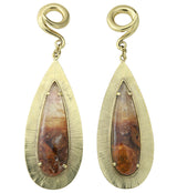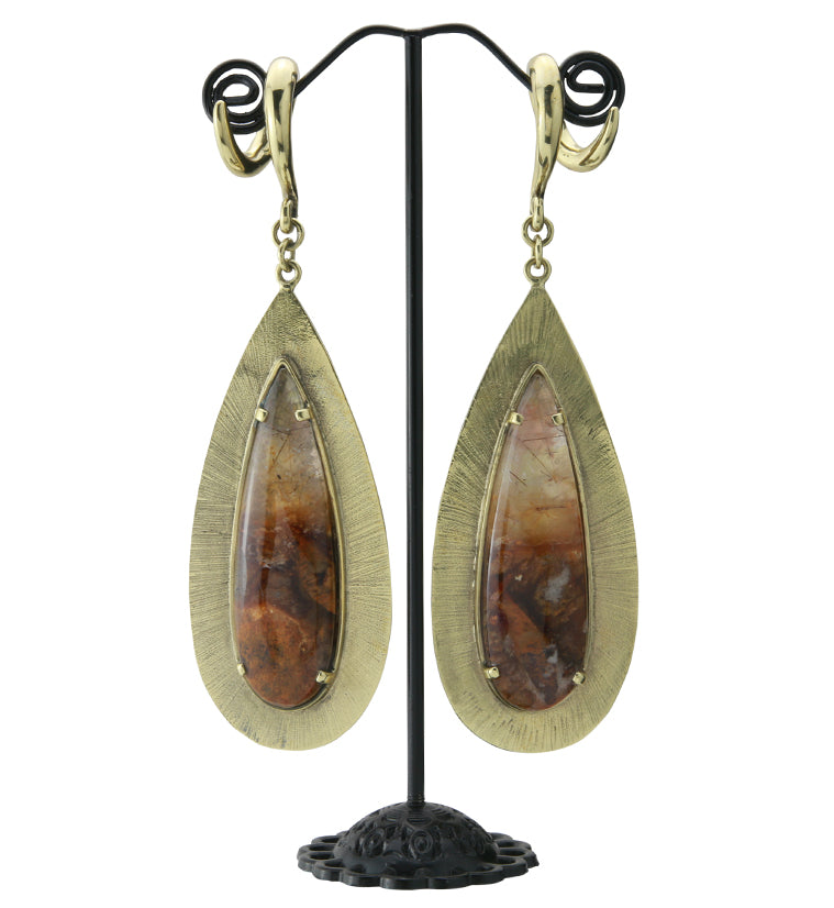 Intricate rutilated quartz brass ear weights that are 100% unique in color, pattern and size. They are made from brass and sold in pairs. Wearable at 4G or bigger. Sold in pairs (2pcs). Free domestic shipping.