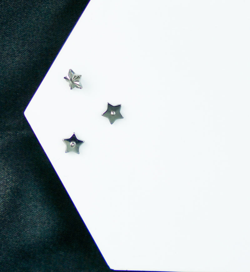 Internally threaded top piece that has a 5mm, corrugated star design. Choose your size between 16G and 14G with M0.9 or M1.2 threading. Made from strong ASTM F-136 titanium. Design measures about 5mm. Sold individually (1pc, top only).