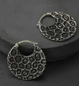 Lightweight white brass earrings/hangers with a sea coral design. Size is 16G. Available in sizes Small and Large. Small: height and width are 30mm each and weight is about 5.5 grams each. Large: height is 77mm and width is 70mm. Large weight is about 35 grams each. Made from white brass. Not meant for long term wear. May oxidize under extreme moisture conditions. Sold in pairs (2pc). For healed piercings/lobes.