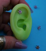 This titanium top is sold individually and made from the highest quality ASTM F-136 titanium. It features a flower design, measuring 8mm in size and designed to fit most threadless posts with a 25G pin. Made from marquise pink cz gems. Beautiful style to add to your piercing!