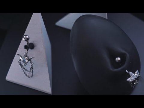 Gorgeous belly button ring made from ASTM F-146 titanium and decorated with a 4mm ball top and a 12mm triple marquise clear cz gem design on the bottom. Attached is a dangling 3mm clear cz gem and a dangling chain. Internally threaded. Size is 14G with a 3/8" (10mm) length. Sold individually (1pc).