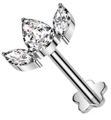 Sepal Clear CZ Flower Back Titanium Threadless Labret