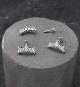 Internally threaded labret that consists of an arch top shape that has alternating marquise and round clear cz gems. Size: 18G. Length is 1/4" (6mm) with a 3mm flat back. Made from 316L stainless steel. Sold individually (1 pc).