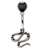 Serpent Teardrop Black CZ Stainless Steel Belly Button Ring