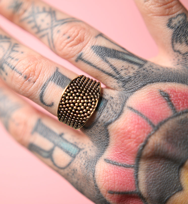 This Shield Brass Ring is a handcrafted, adjustable accessory made from polished brass. Specially designed to fit all sizes and nickel, lead, and cadmium free. It stands at 10mm high and 10mm wide, while its adjustable nature ensures lasting use and convenience. This ring should be removed in cases of extreme moisture as brass may oxidize. Sold individually (1pc).