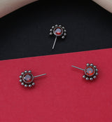 Striking, side-facing threadless top piece with a red cz gem surrounded by a beaded design. This piece is made from ASTM F136 Titanium. Approximately 10mm length. Pin length is 5mm. Sold individually.