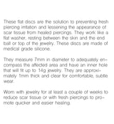 Sold individually (1 piece) Implant grade silicone Help prevent fresh piercing irritation Fits 20G, 18G, 16G, 14G Diameter: 7mm