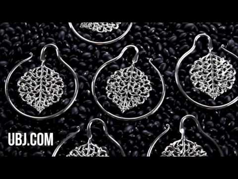 Pretty ear weights with a foliage-like design hanging in the center. These are handmade from white brass. Brass is not meant for long term wear. It may oxidize under extreme moisture conditions. They weigh about 20 grams each. Must be at least 10G to wear. Sold in pairs (2pcs).