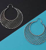 Silver brass hangers with a pretty, wave-like design. Handmade. Made from white brass with a ASTM f-136 titanium clasp. Size is 18G with approximate dimensions of 80mm x 70mm. These are sold in pairs (2pcs).