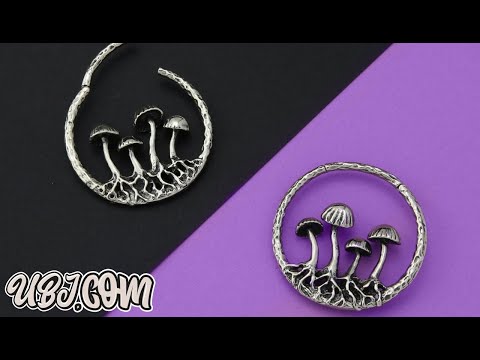 Silver hoop ear weights made from white brass with a mushroom design. These are 8G so must be 8G or bigger to wear. These weigh about 14 grams each and are approximately 42mm x 42mm. Sold in pairs (2pcs). For healed piercings/lobes.