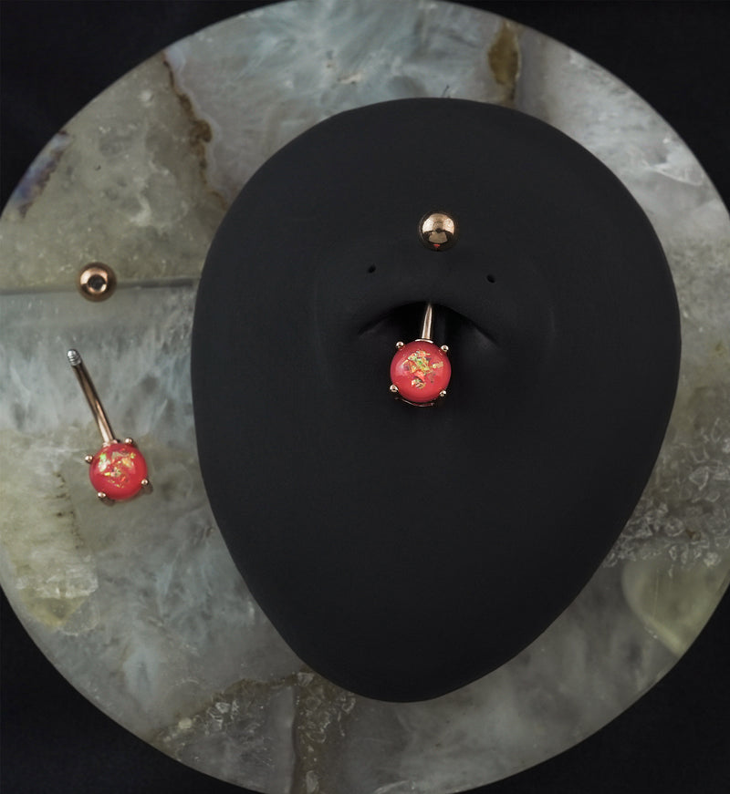 Simple Pink Opalite Rose Gold PVD Stainless Steel Belly Button Ring