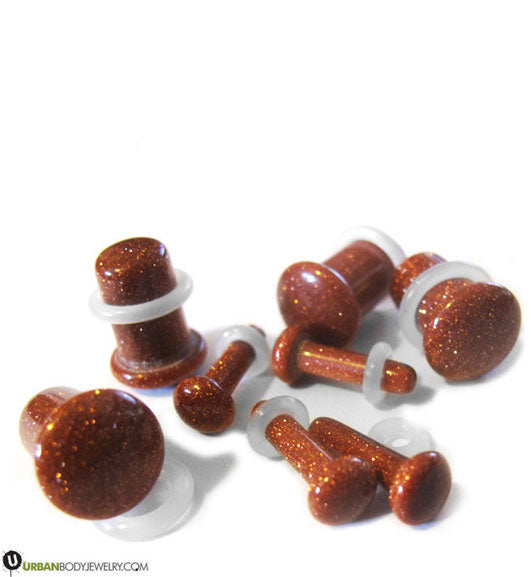 These plugs aren’t made of gold, but they are a neat golden color that’s sure to please anyone. Instead of metal, they’re made of smooth, polished glass that has a nice golden copper appearance. The single flare plugs are 16mm long and are sold in pairs in a variety of sizes: 8 gauge (3mm), 4 gauge (5mm), 2 gauge (6mm), 0 gauge (8mm), and 00 gauge (10mm), 1/2" (12mm), 9/16" (14mm, 5/8" (16mm). Please be aware that each plug is slightly different due to the nature of the glass, but we’ll do our best to provide you with a matching pair.