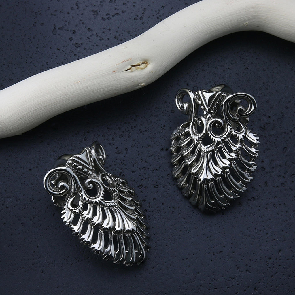 Sold in pairs (2pc) Size: 00G (10mm) Width: 30mm Height: 41mm 14 grams each Made from white brass Brass is not meant for long term wear May oxidize under extreme moisture conditions