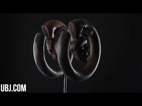 Add a bold, natural vibe to your look with these Skull Wooden Hoop Hangers, sold in pairs and handcrafted from unique Areng wood. Available in sizes from 4G (5mm) to 1/2" (12mm), each pair features one-of-a-kind patterns and colors. Perfect for healed lobes, these lightweight hoops bring a fun, edgy twist without stretching your ears. Just remember to keep them away from direct sunlight and moisture to preserve their charm.