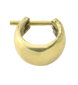 Lightweight yellow brass hinged rings with a smooth design. Hinged design for easy open and closure. Size is 18G. Measures at 12mm x 12mm. Loose 5/16" (8mm) fit and tight 3/8" (10mm) fit. Made from brass. Not meant for long term wear. May oxidize under extreme moisture conditions. Sold individually (1pc). Put quantity at 2 and use these as ear huggies! For healed piercings/lobes.