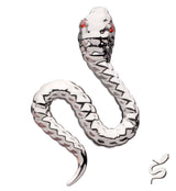 This titanium threadless top features a snake design that is scaly in texture. For eyes, the snake has two garnet red cz gems. This piece is made from ASTM F-136 titanium and fits most threadless posts. Pin size is 25G. The top design measures 16.1mm x 9.6mm. Sold individually (1pc - top only).