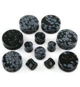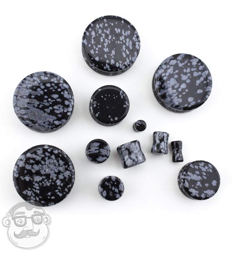 These Snowflake Obsidian Stone Plugs come in pairs and are available in sizes 8G (3mm) through 1 & 1/4" (32mm). They feature a double flares shape with a smooth and polished finish. Sizes 8G (3.2mm) - 1 & 1/4" (32mm) have a 10mm wearable surface, while 1 & 1/8" (28mm) - 1 & 1/4" (32mm) have an 11mm wearable surface. Furthermore, the pattern and color of each plug may vary due to the natural characteristics of the stone, but we will do our best to find you a matching or complementing pair.