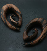 Wooden oval spirals that would make a great addition to your plug /ear weight collection! These are handcrafted and polished from areng wood. Available in sizes 12G (2mm) - 5/8" (16mm). Please note that the color and pattern of each piece will be unique due to the nature of the wood. We will do our best to find you a matching pair. Sold in pairs (2pcs).