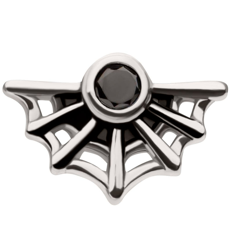 This Spider Web Black CZ Stainless Steel Internally Threaded Labret is an ideal choice for accessorizing a piercing. It's sold individually and is crafted from 316L stainless steel. Complete with a flat back size of 3mm and design size of 9mm x 6mm. The labret is 18G and ¼" (6mm) in length, with a black CZ gem and internally threaded.