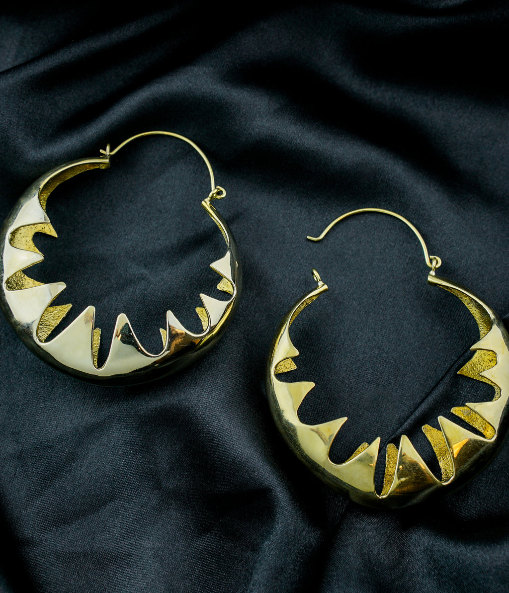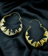Hoop earrings that are made from brass and have a shell-like, casing design that is thick, but hollow. They are size 18G (1mm) so must be 18G or bigger to wear. Brass is not meant for long term wear as it may oxidize under extreme moisture conditions. The hinged design opens and clicks closed easily. Full size measures about 65mm x 55mm and they weigh about 14 grams each. For healed lobes. Sold in pairs (2pcs).