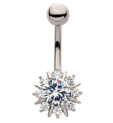 Spiky Flower CZ Belly Ring
