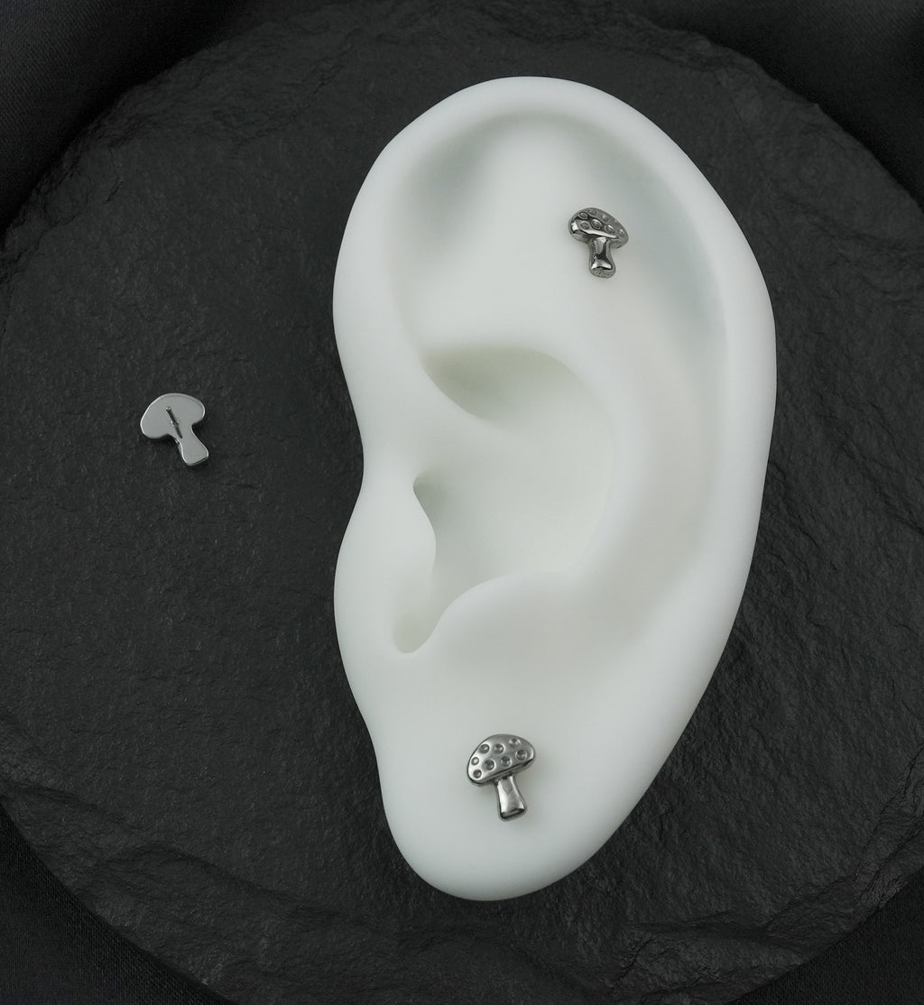 Made with ASTM F136 Titanium, this fun top is perfect for cartilage and tragus piercings. Sold individually and featuring a 25G pin, it fits most threadless posts. Its unique design measures 7mm x 6mm and is sure to add a touch of whimsy to your look.
