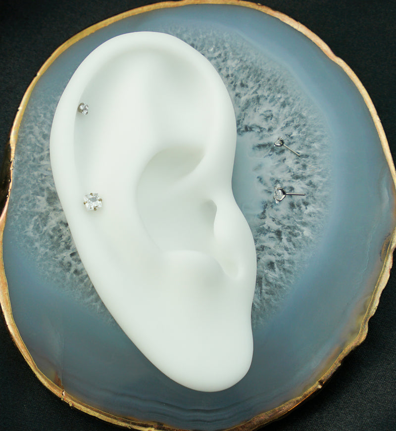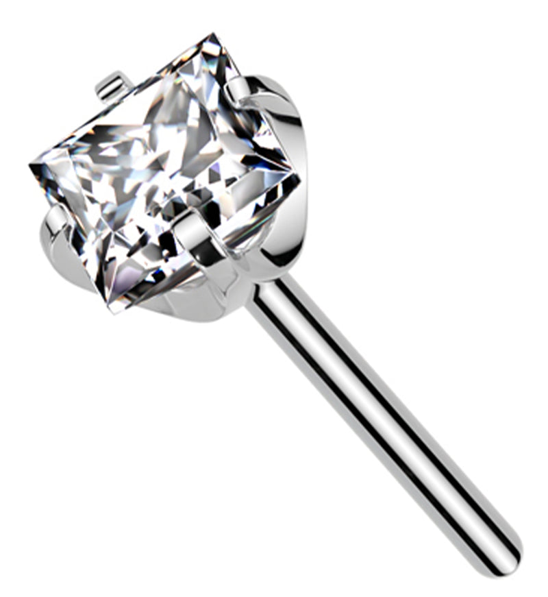 Made from strong ASTM F-136 titanium, this threadless top piece has a square, clear cz gem in a prong setting on top. Choose your gem size between 2mm and 3mm. This top has a threadless design and fits most threadless posts for an effortless fit. Sold individually (top only).