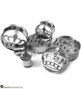 Sold in pairs (2 pieces) Double flare Laser cut crown logo 316L stainless steel
