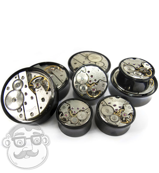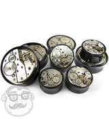 Sold in pairs (2 pieces) Double flares Black PVD 316L stainless steel Clockwork inlays Limited sizes 18mm - 30mm