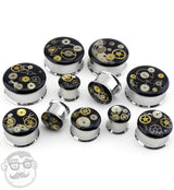 Sold in pairs (2 pieces) Double flare Real clock parts Each plug will be unique Hollow backs 1/2" - 1 Inch