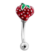 Curved barbell with a cute strawberry design on top. Complete with a 3mm ball on the bottom. Beautiful piece for your daith or eyebrow piercing! Made from 316L stainless steel and is 16G. Length is 5/16" (8mm). Externally threaded. Intended for healed piercings. Sold individually (1pc).