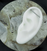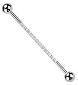 This industrial barbell is made from strong ASTM F-136 titanium and has centered row of clear cz gems. The size is 14G with a wearable length of 1 & ½”(38mm) and the balls ends are externally threaded and measure 5mm each. Sold individually and is meant for healed piercings.