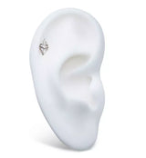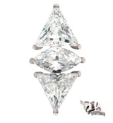 Internally threaded top piece that has two triangle shaped clear cz gems on either side of an oval clear cz gem. The gems are barely separated from each other creating a cool dissected look. Made from ASTM F-136 titanium. Measures about 9mm x 5mm. Size: 16G. M0.9 threading. Sold individually (top piece only).