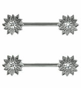 Sunflower Clear CZ Stainless Steel Nipple Barbell