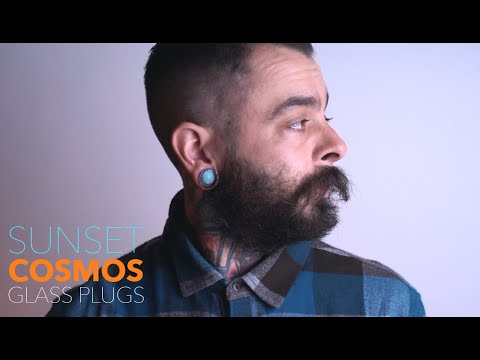 Orange glass plugs with a glittery, iridescent swirl in the center. Double flares. Handcrafted and polished. Pick your size from 2G (6mm) - 1" (25mm). Wearable area is 8mm. Full length (including convex dome front) is 12mm. Sold in pairs (2pcs).