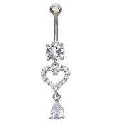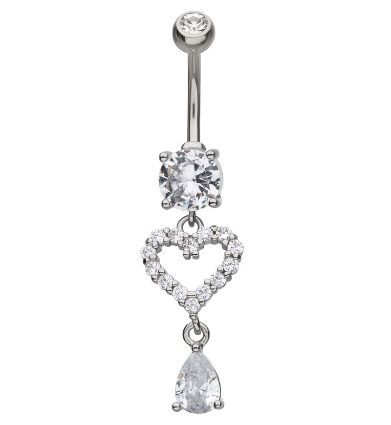 Sweetheart Teardrop Clear CZ Dangle Stainless Steel Belly Button Ring