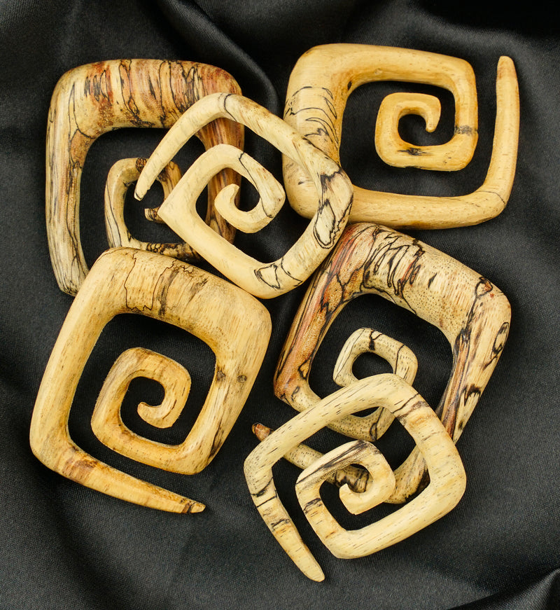 This pair of tamarind wood square spirals is a great choice to add to your jewelry collection! Handcrafted and featuring 8G (3mm) to 5/8"(16mm) sizes, the pattern and color of each spiral will vary due to the unique characteristics of the wood. Add stylish and natural detail to your collection with these beautiful tamarind wood spirals. Approximate measurements below: