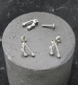 Internally threaded labret that consists of clear cz gems in the shape of the constellation of the Taurus zodiac. Pin and base are made from 316L stainless steel and the constellation design is made from rhodium plated brass so it may tarnish over time if exposed to extreme moisture conditions. Choose your gauge size between 18G and 16g. Length is 5/16" (8mm). Constellation size is 13mm x 7mm. Flat back: 4mm. For healed piercings. Sold individually (1pc).