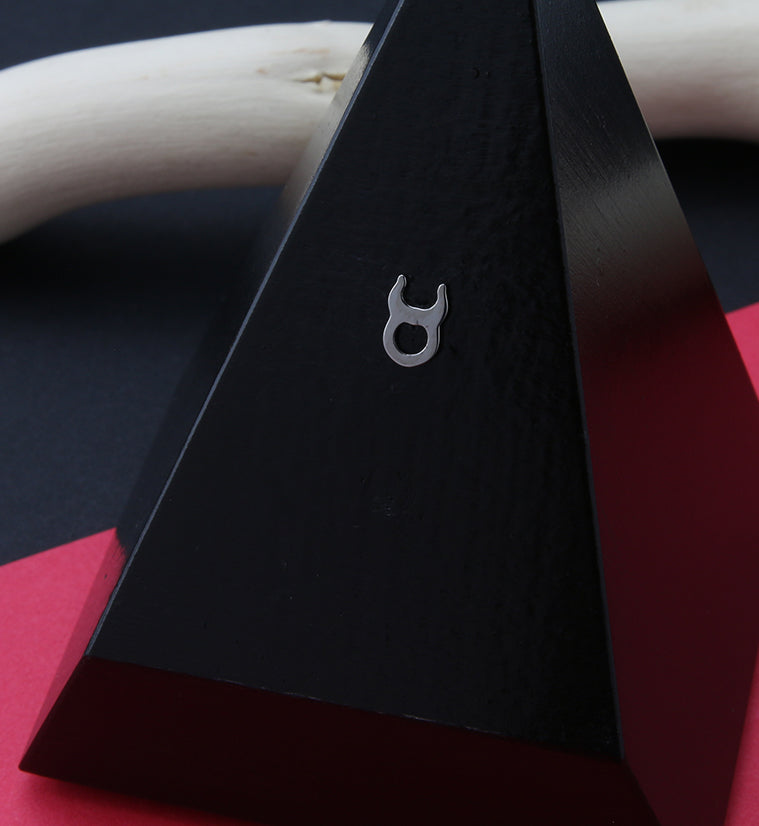 Threadless top piece in the shape of the taurus zodiac sign. Made from ASTM F-136 titanium. 25G pin, fits 10G-18G threadless posts. Top size is approximately 7mm x 5mm. Sold individually (top piece only).