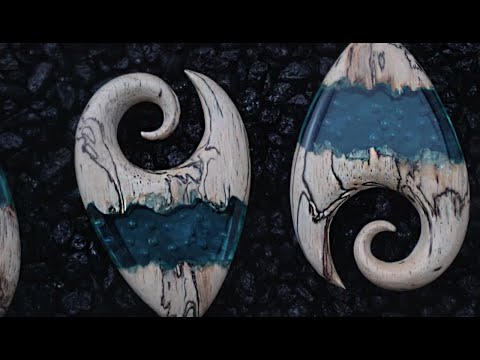 Teal Resin Bubble Tamarind Wood Ear Weights