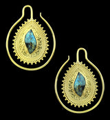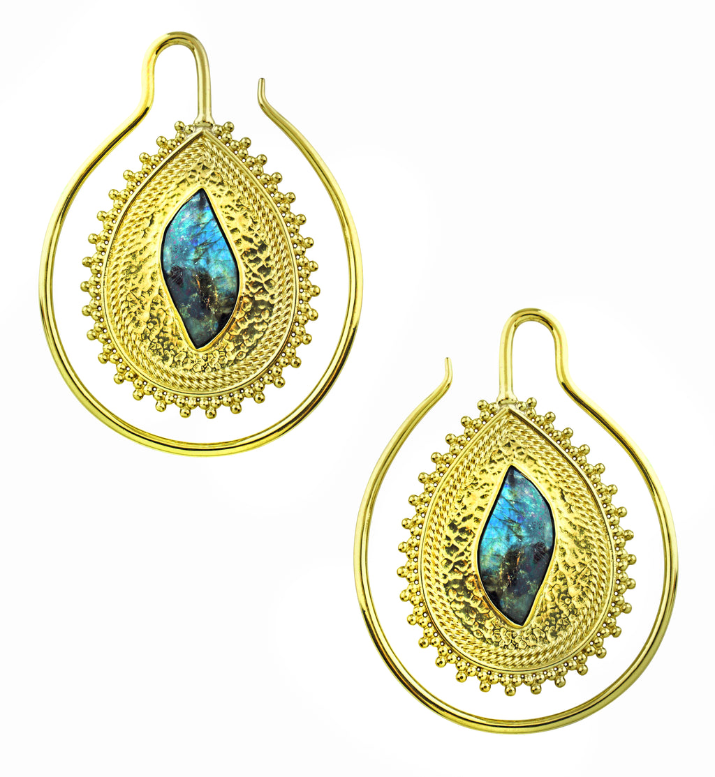 Ornamented Labradorite Stone Inlay Brass Ear Weights
