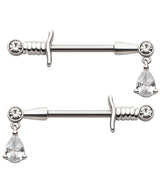 Teardrop Clear CZ Dagger Stainless Steel Nipple Barbell