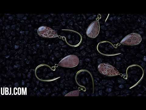 Sold in pairs (2pc) Fossilized coral 8G or bigger to wear Height: (55mm) Width: (18mm) Hand crafted Brass is not meant for long term wear. May oxidize under extreme moisture conditions