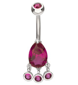 Teardrop Fuchsia CZ Triple Bezel Dangle Stainless Steel Belly Button Ring